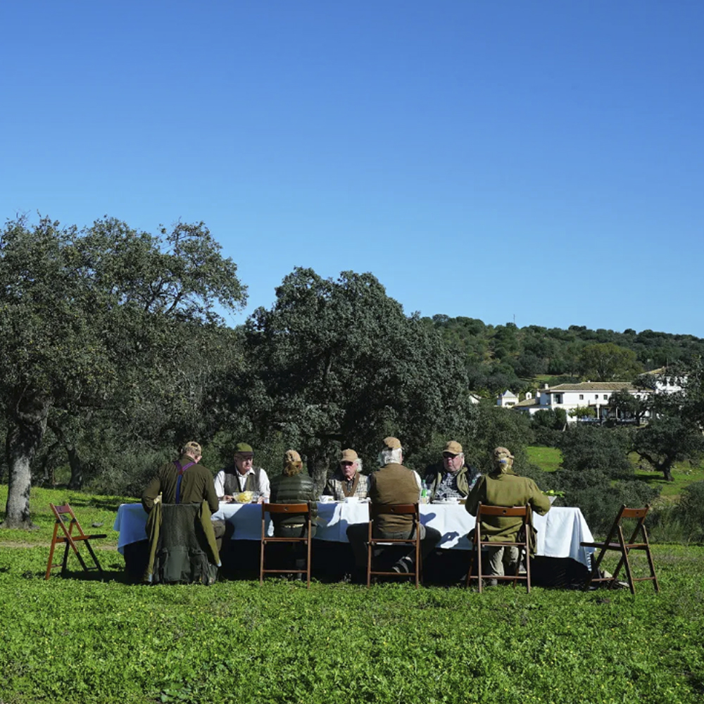 comienza con un delicioso desayuno a las 08:30 servido en la sala de trofeos, seguido de la selección de escopetas, sorteo de puestos, presentación de cargadores y secretarios, recordatorios de seguridad y partida hacia los dos primeros ojeos. A media mañana se servirá un taco en el campo, seguido de otros tres ojeos y se regresará al Cortijo para disfrutar de una excelente comida.